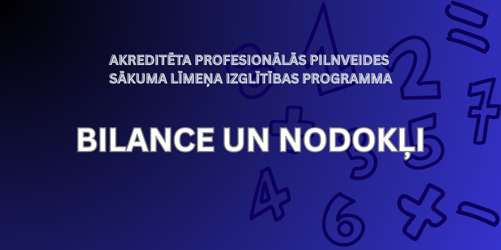 Akreditēta profesionālās pilnveides sākuma līmeņa izglītības  programma BILANCE UN NODOKĻI ir veidota tiem, kuri vēlas apgūt grāmatvedības pamatus strukturēti un praktiski. Tā ir piemērota gan tiem interesentiem, kas ar grāmatvedību sastopas pirmo reizi, gan arī tiem, kuri kādreiz to ir mācījušies, bet nav strādājuši profesijā.